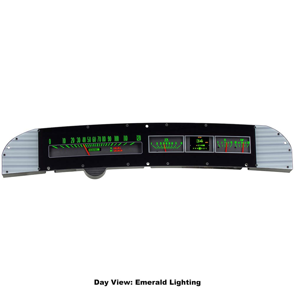This Dakota Digital RTX gauge kit drew upon the factory instrument cluster found in the 1963-64 Chevy Impala, Bel Air and Biscayne and added LED backlighting, TFT message centers and full color-changing abilities. Use your stock steel front bezel.