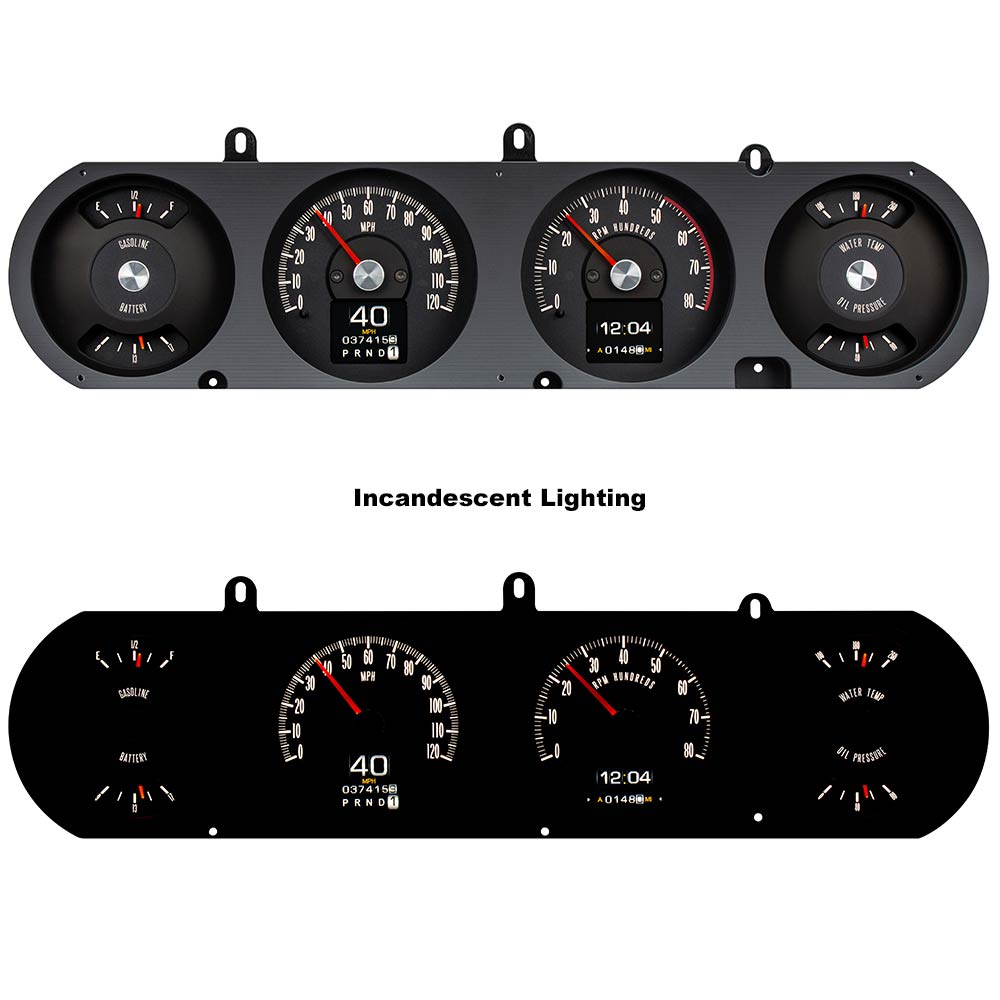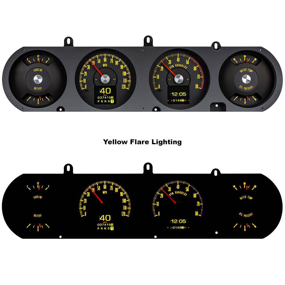 This Dakota Digital GTO direct-fit gauge kit features a machined aluminum housing for an accurate fit, while the twin TFT message centers and LED backlighting ensure the driver is well informed at all times. Every effort was made to keep the original styling cues intact, so even a straight restoration can have the best instruments available.