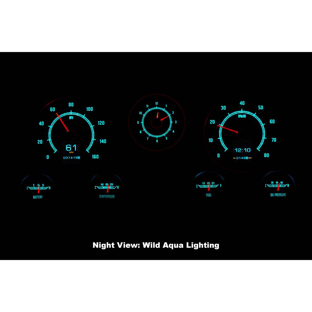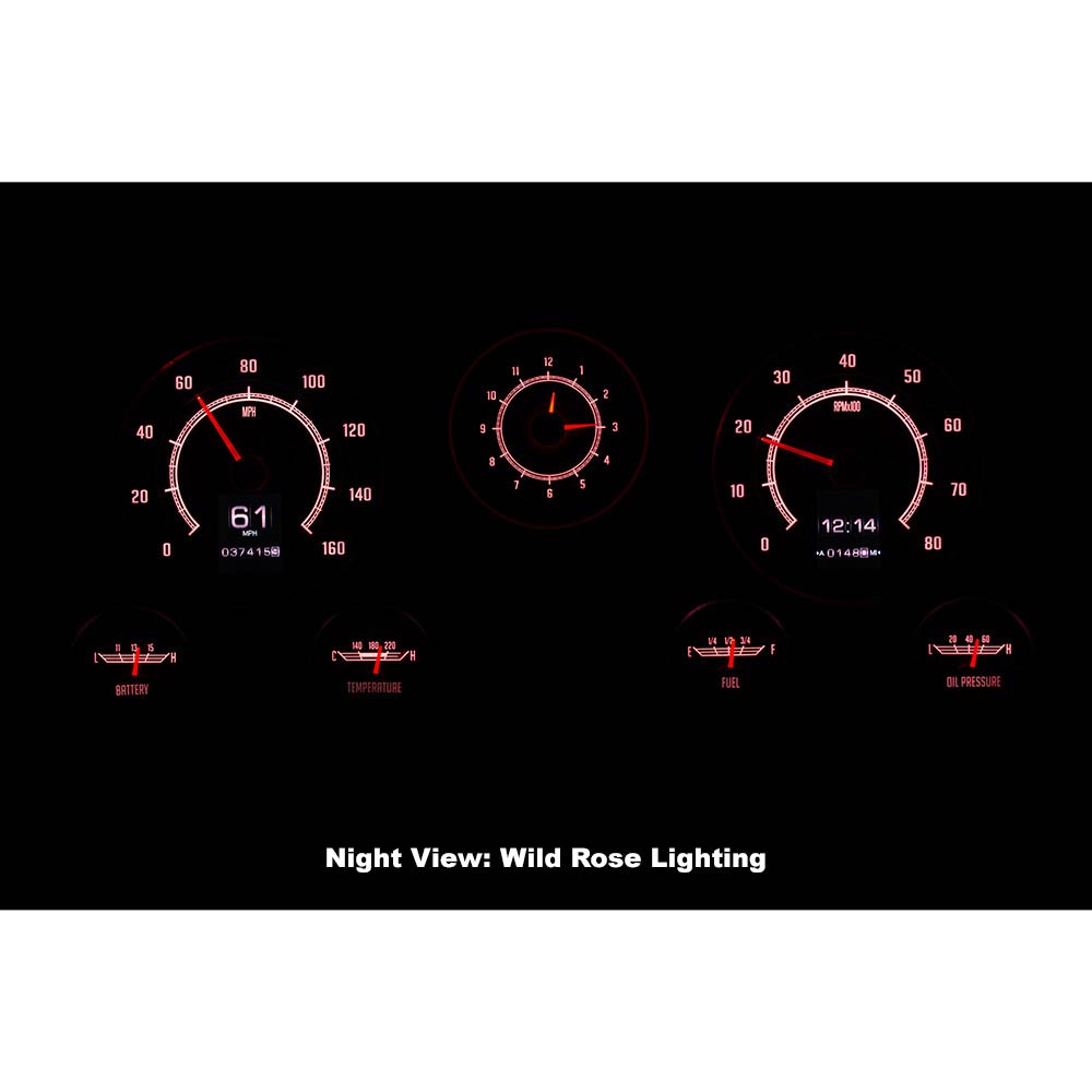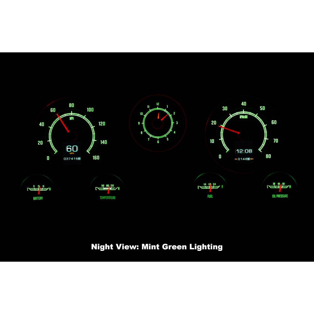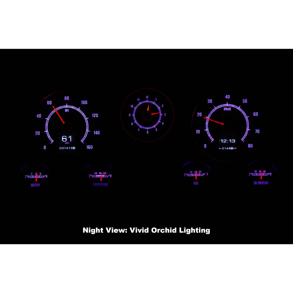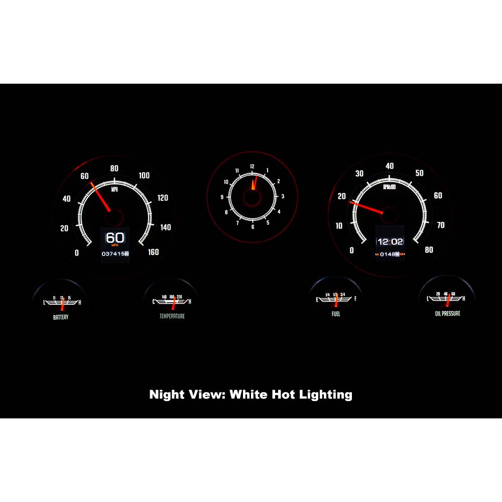 This Dakota Digital RetroTech gauge kit gives you the best of both worlds. The look of the original type gauges with all the modern functionality that Dakota Digital is know for. This is as close to stock as you can get while enjoying color-changing LED backlighting, dual TFT message centers and of course late-model drivetrain compatibility. The analog clock in the center position seals the deal; RTX is what you’ve been waiting for! Requires stock or reproduction seven-hole bezel for installation, available separately.