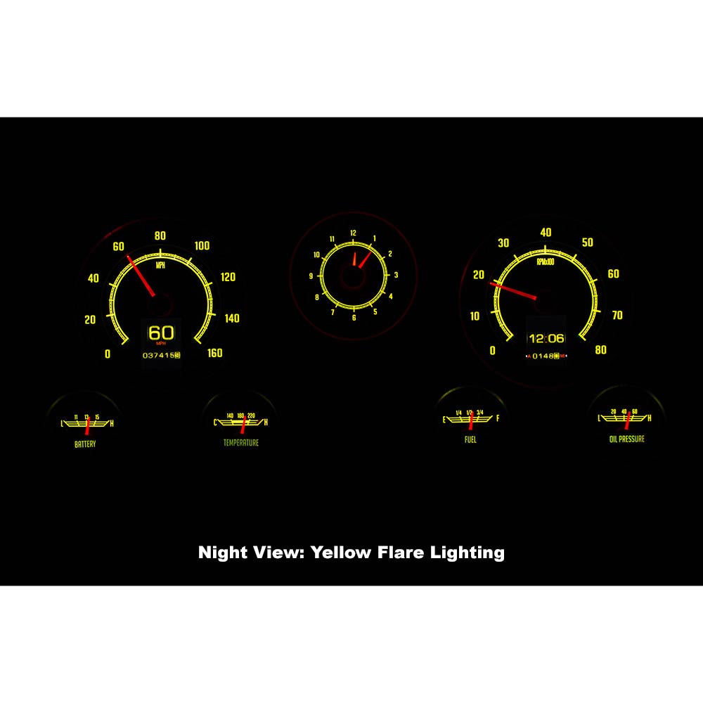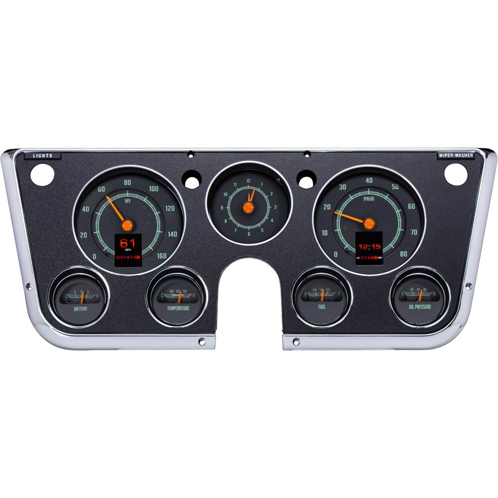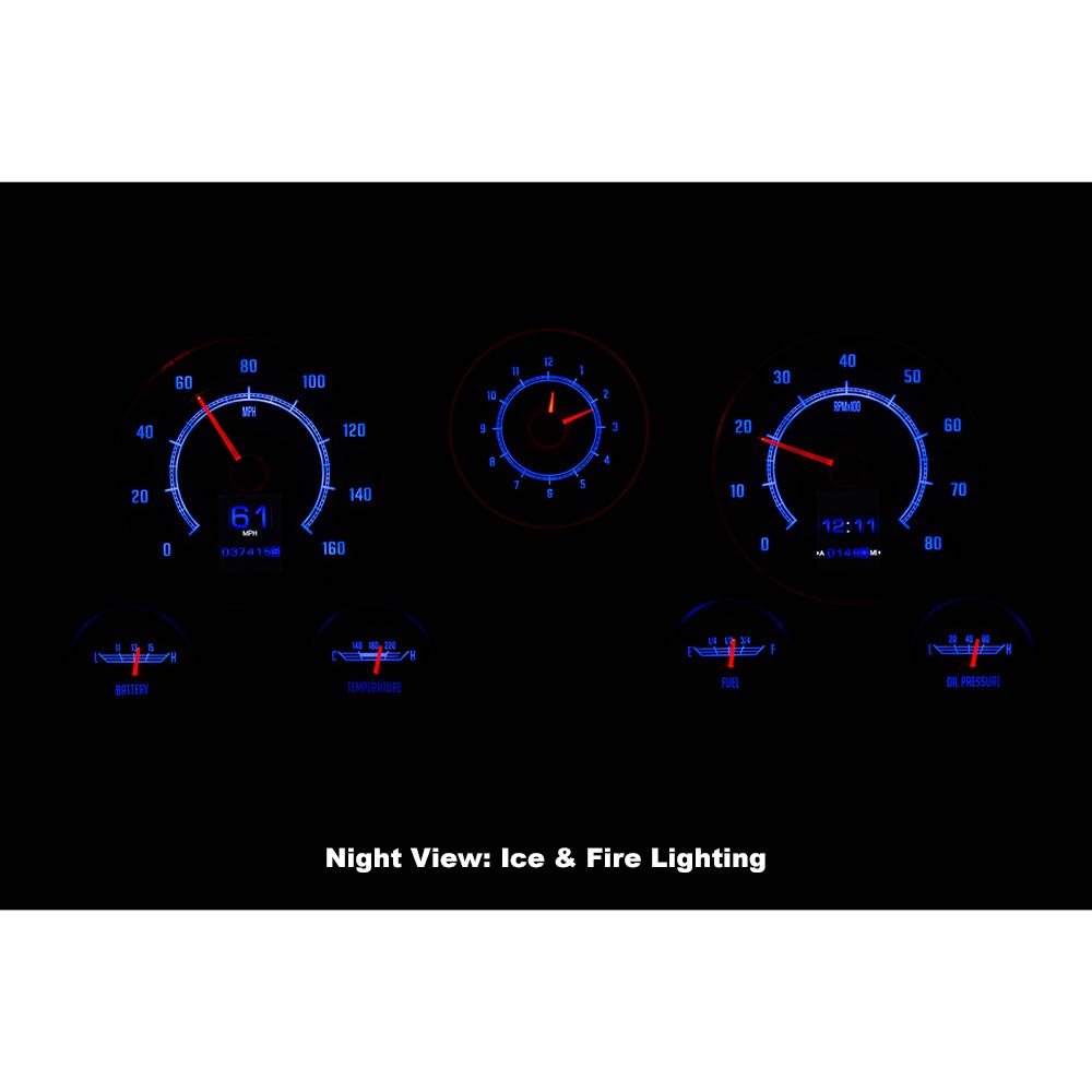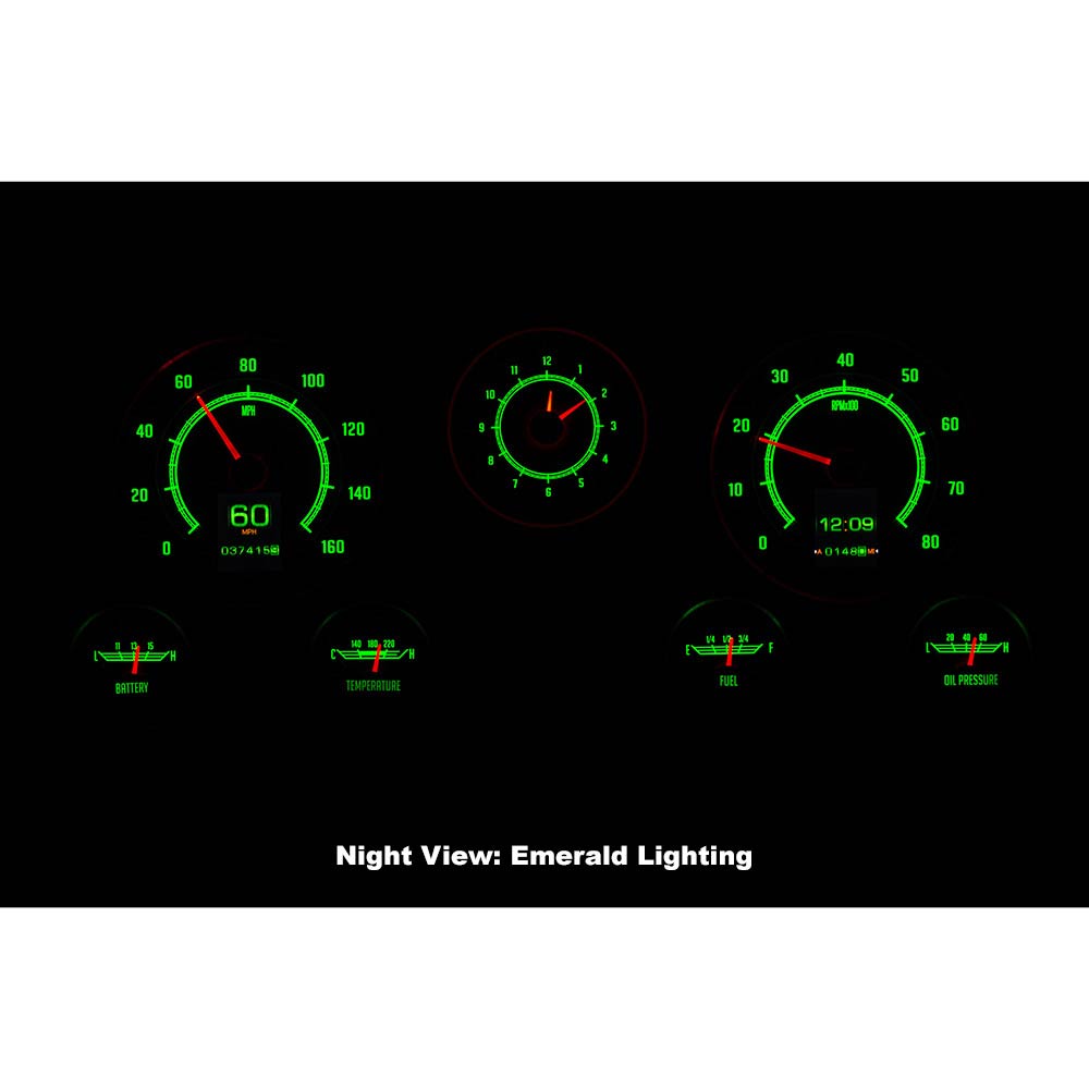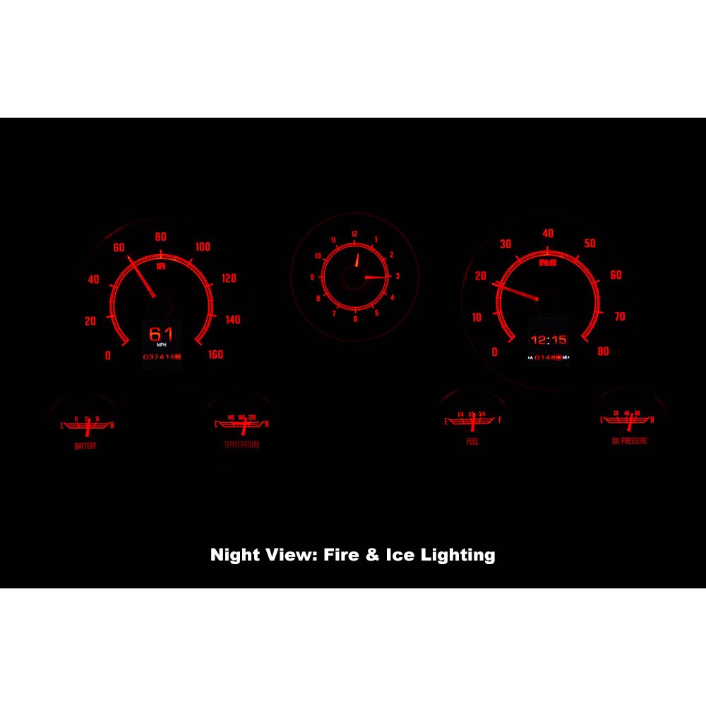 This Dakota Digital RetroTech gauge kit gives you the best of both worlds. The look of the original type gauges with all the modern functionality that Dakota Digital is know for. This is as close to stock as you can get while enjoying color-changing LED backlighting, dual TFT message centers and of course late-model drivetrain compatibility. The analog clock in the center position seals the deal; RTX is what you’ve been waiting for! Requires stock or reproduction seven-hole bezel for installation, available separately.