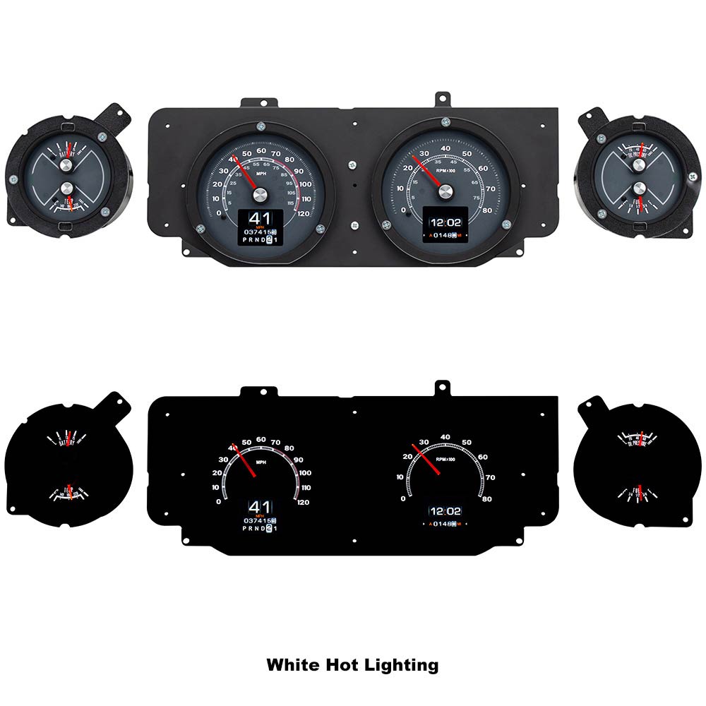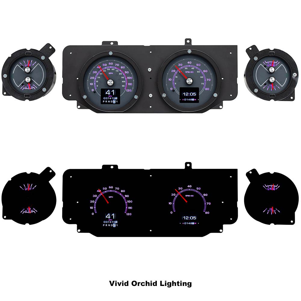 This Dakota Digital gauge kit features full LED backlighting making night visibility second to none, and the OEM styling will keep the vintage vibe you’re going for. The TFT message centers will keep you informed of what is going on under the hood, and you can add the RLC clock to the passenger side for a complete upgrade.