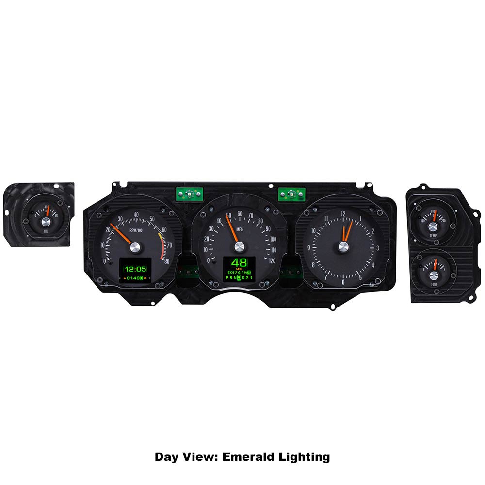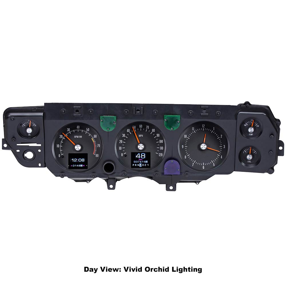 Starting from scratch, CNC machined housings are filled with electronics designed and built in-house, helping Dakota Digital once again raises the bar for aftermarket instrumentation. The high-definition TFT message centers can be fully configured to display just about any piece of information needed, or just leave the vintage-looking tumbler odometer on the screen for a totally stock appearance.