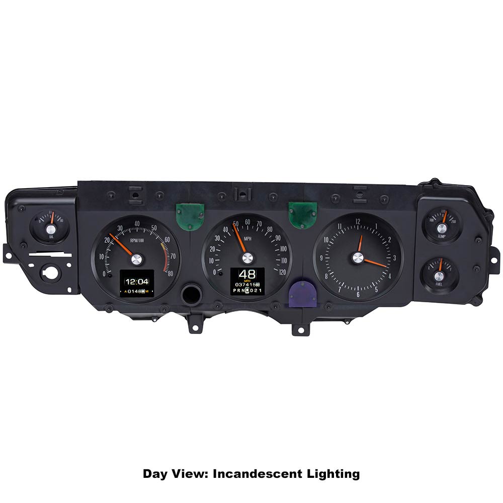This Dakota Digital RetroTech gauge kit gives you the best of both worlds. The look of the original type gauges with all the modern functionality that Dakota Digital is know for. The king of the muscle cars offers six round gauge openings, and this instrument system will keep the purists happy as well as the pro-touring set! Two TFT displays are hiding in plain sight, displaying the essentials with the ability to add more readings for the serious driver. Designed as a bolt-in upgrade to a stock or reproduction gauge carrier (available separately) and bezel.LEDs. Screws directly into original or aftermarket gauge carrier, available separately.