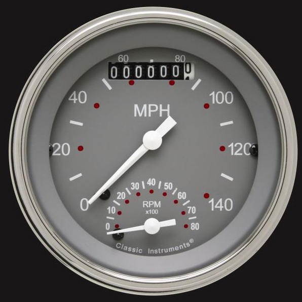 The SG Series 3-3/8" Ultimate Speedometer Speedo/Tach Combo 0-140 mph / 8000 rpm Range with a Gray Face, White Numbers and Pointers that come with Stainless Low Step Bezels and Curved Glass Lens.