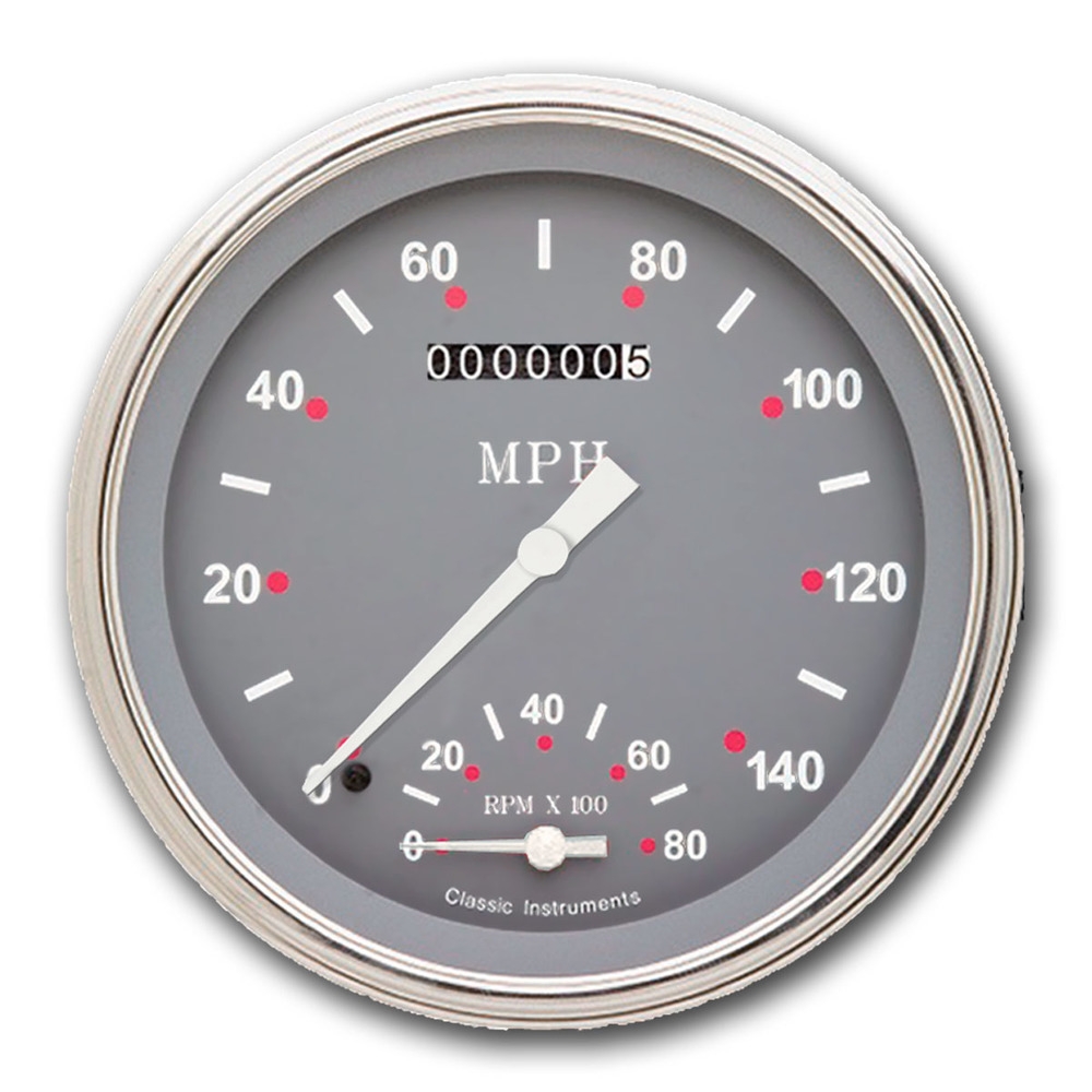 The SG Series 4-5/8" SpeedTachular Speedo/Tach Combo 0-140 mph / 8000 rpm Range with a Gray Face, White Numbers and Pointers that come with Stainless Low Step Bezels and Curved Glass Lens.