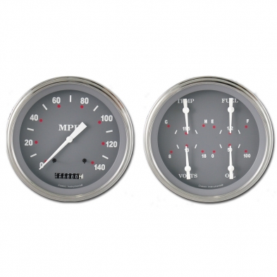 The SG Series 2 Gauge Kit includes a 4-5/8" Speedo and Quad (Fuel, Oil, Temp and Volts) with a Gray Face and White Numbers and Pointers that come with Stainless Low Step Bezels and Curved Glass Lens.