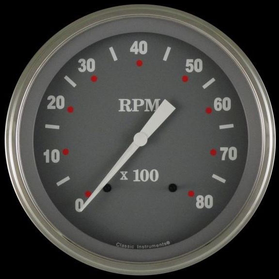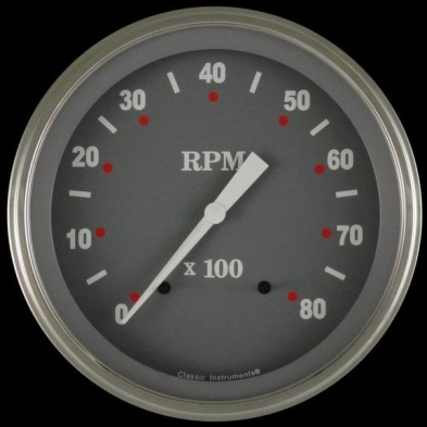 The SG Series 4-5/8" Tachometer (8000 rpm) Range with a Gray Face, White Numbers and Pointers that come with Stainless Low Step Bezels and Curved Glass Lens.