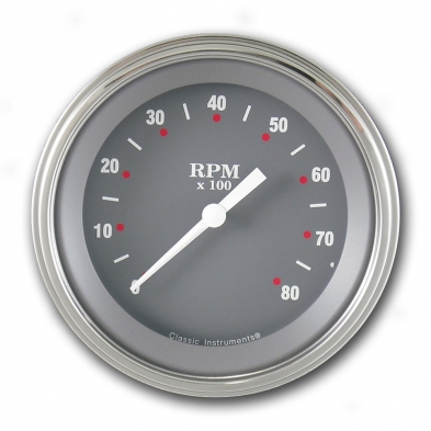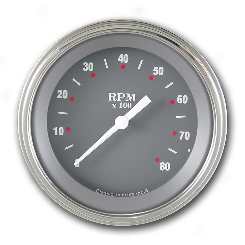 The SG Series 3-3/8" Tachometer (8000 rpm) Range with a Gray Face, White Numbers and Pointers that come with Stainless Low Step Bezels and Flat Glass Lens.