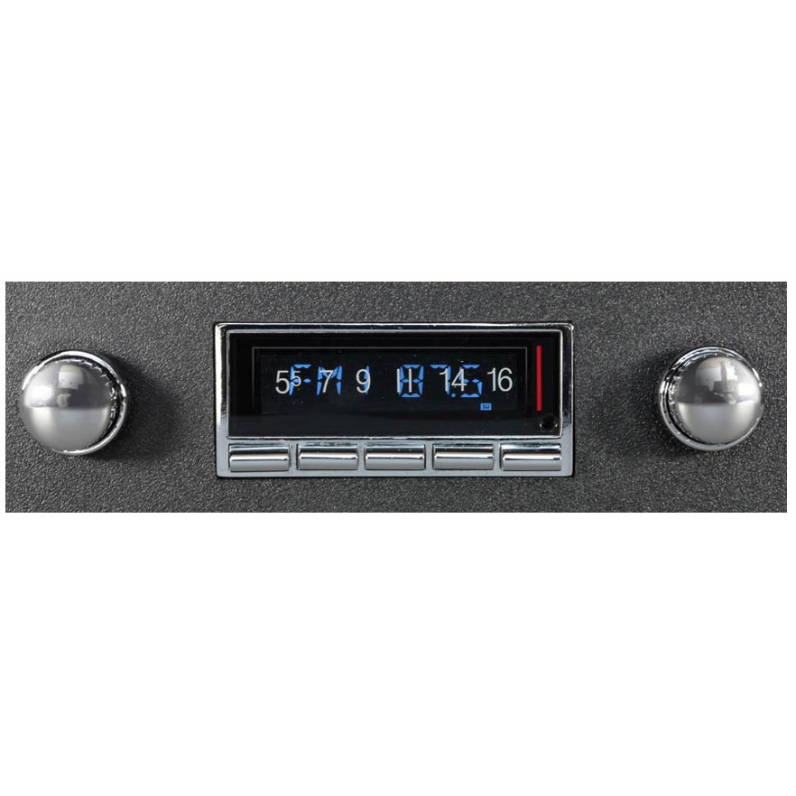 The USA-740 offers the same classic look that Custom Autosound has always been known for with today’s latest features. Now, with built-in Bluetooth (microphone included), answer calls and get Bluetooth streaming music from your Bluetooth capable phone or Bluetooth compatible device. Match the dominant color of your instrument cluster with user selectable multiple LCD color choices with LCD dimmer control. The AM/FM RDS tuner shows station, song and artist on the LCD display. Fully controls optional CD-1 CD player. Classic style with today’s sound and performance taking every road and curve with you in your vintage vehicle.