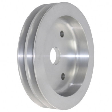 Chevy SB SWP 2 Groove Crank Shaft Pulley - Satin Aluminum