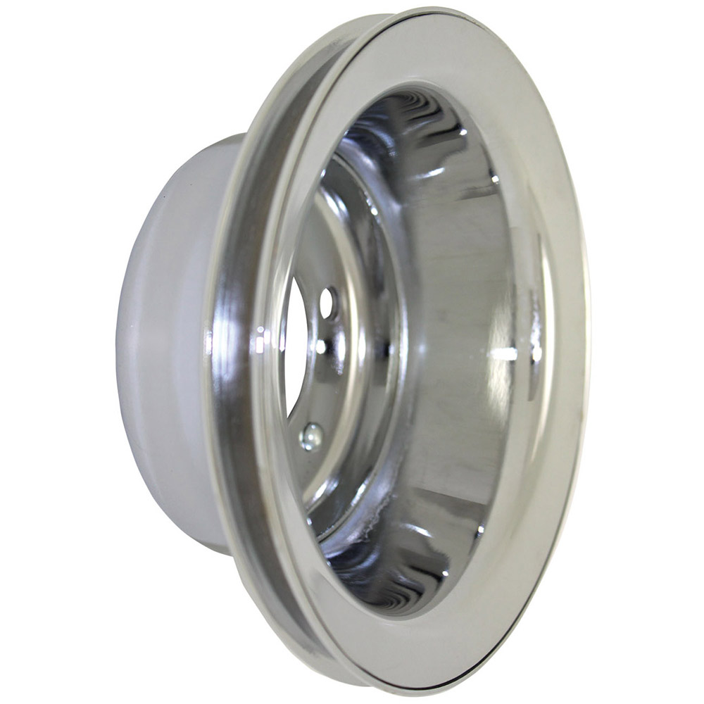 Finish: Chrome SteelFits: Small Block Chevrolet 283-350 1955-1968Diameter: 6.90"Bolt Circle: 2.30"