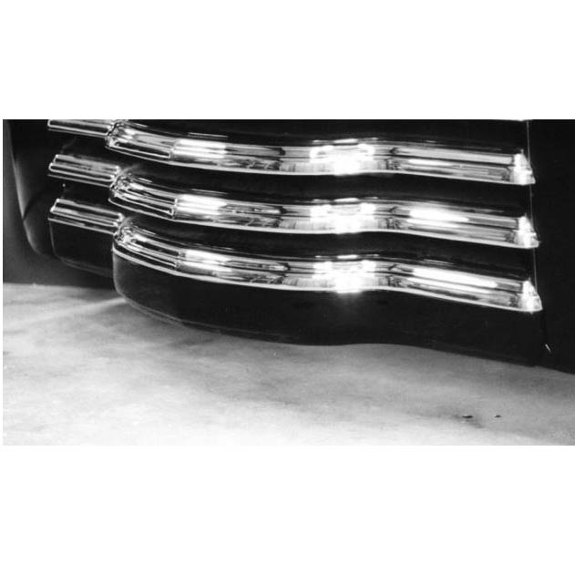 1947-1953 Chevy truck front roll pan. For use without the front bumper or gill pan. This fiberglass roll pan attaches to the bottom grill tooth and extends from fender to fender making for a complete finished look.