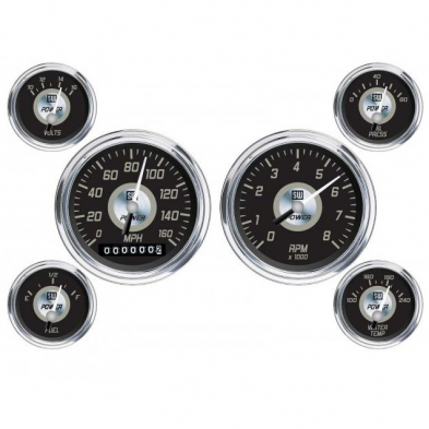 Power Series Black/White Face 6 Gauge Electric Speedo Kit
