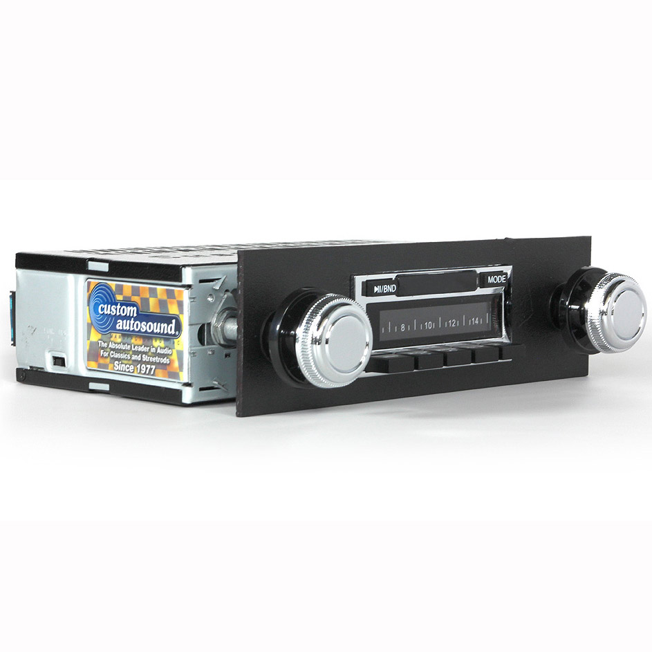 Custom Autosound's USA-630 is designed to provide the best in audio technology wrapped in a classic car stereo look. It will fit your car or truck's stock dash without any modifications required. It has been designed with a bezel containing your car's manufacturer logo as well as large OEM style push-buttons to compliment your dash.