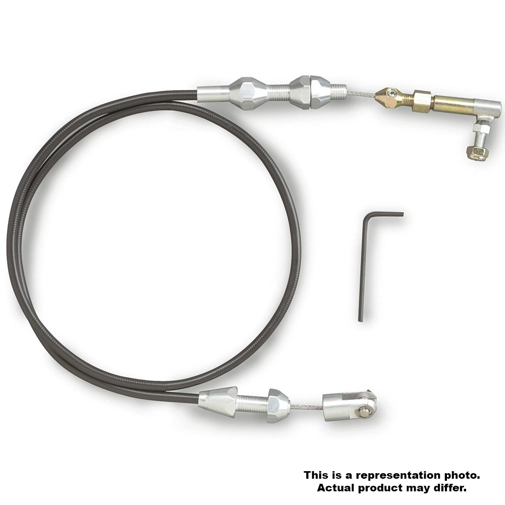 All Lokar Throttle Cables are designed with a specially extruded liner for extended life of the cable – not to be confused with ordinary braided brake hose. Cables are equipped with aluminum fittings and aluminum ferrules to eliminate fraying. “U-Cut-to-Fit” outer housing is available in 24" or 36" lengths with a “U-Cut-to-Fit” stainless inner wire. Clevis is designed without cotter pins or set screws. Adapts to factory and aftermarket pedals. Custom lengths available upon request. Kits complete with installation instructions. Polished throttle cables will include polished aluminum fittings. Hi-Tech black stainless cables will include black anodized aluminum fittings.
