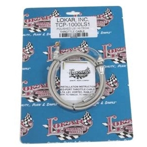 All Lokar Throttle Cables are designed with a specially extruded liner for extended life of the cable – not to be confused with ordinary braided brake hose. Cables are equipped with aluminum fittings and aluminum ferrules to eliminate fraying. “U-Cut-to-Fit” outer housing is available in 24" or 36" lengths with a “U-Cut-to-Fit” stainless inner wire. Clevis is designed without cotter pins or set screws. Adapts to factory and aftermarket pedals. Custom lengths available upon request. Kits complete with installation instructions. Polished throttle cables will include polished aluminum fittings. Hi-Tech black stainless cables will include black anodized aluminum fittings.