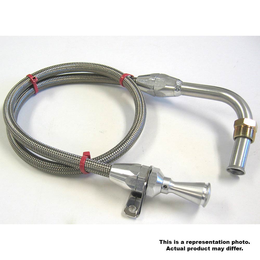 Kit comes complete with braided stainless outer housing and heat resistant, flexible inner measuring cable with E-Z to Read markings. Inner cable is molded with appropriate trans fluid levels. Kit includes dipstick funnel adapter to assist in filling. Firewall mount can be mounted anywhere you desire under the hood such as the firewall or inner fender apron, etc. Firewall mount recommended for full fendered cars and trucks. Special lengths available upon request.