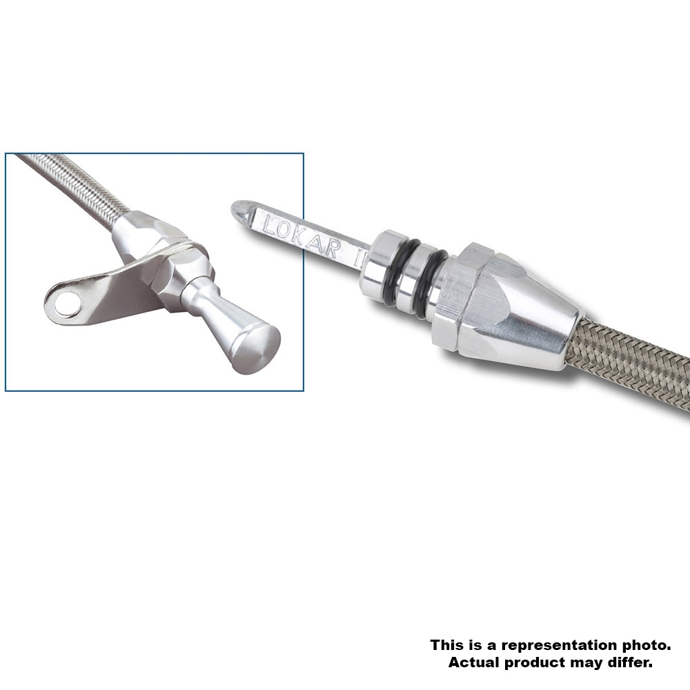 Kit comes complete with braided stainless outer housing and heat resistant, flexible inner measuring cable with E-Z to Read markings. Inner cable is molded with appropriate trans fluid levels. Kit includes dipstick funnel adapter to assist in filling. Firewall mount can be mounted anywhere you desire under the hood such as the firewall or inner fender apron, etc. Transmount dipstick mounts to the bell housing and the length varies according to the transmission application.
