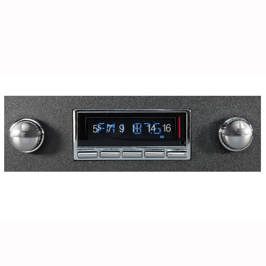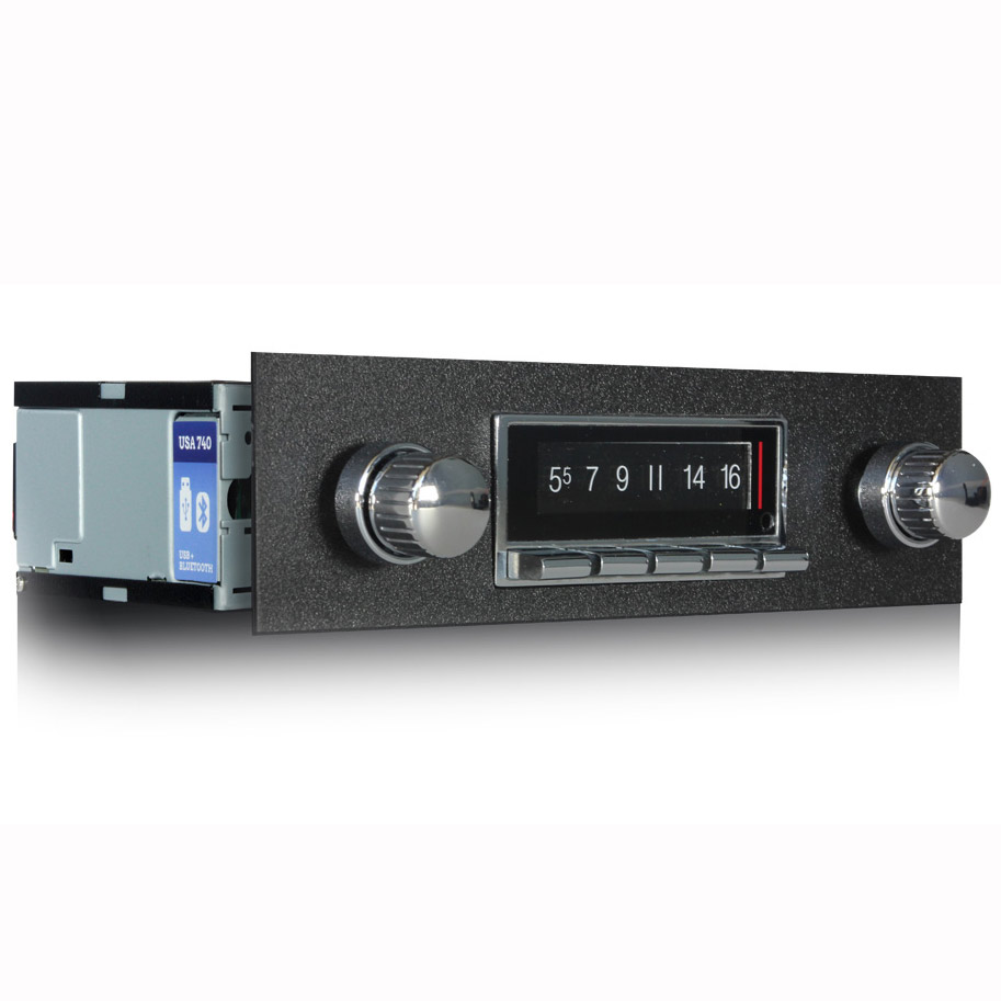 The USA-740 offers the same classic look that Custom Autosound has always been known for with today’s latest features. Now, with built-in Bluetooth (microphone included), answer calls and get Bluetooth streaming music from your Bluetooth capable phone or Bluetooth compatible device. Match the dominant color of your instrument cluster with user selectable multiple LCD color choices with LCD dimmer control. The AM/FM RDS tuner shows station, song and artist on the LCD display. Fully controls optional CD-1 CD player. Classic style with today’s sound and performance taking every road and curve with you in your vintage vehicle.