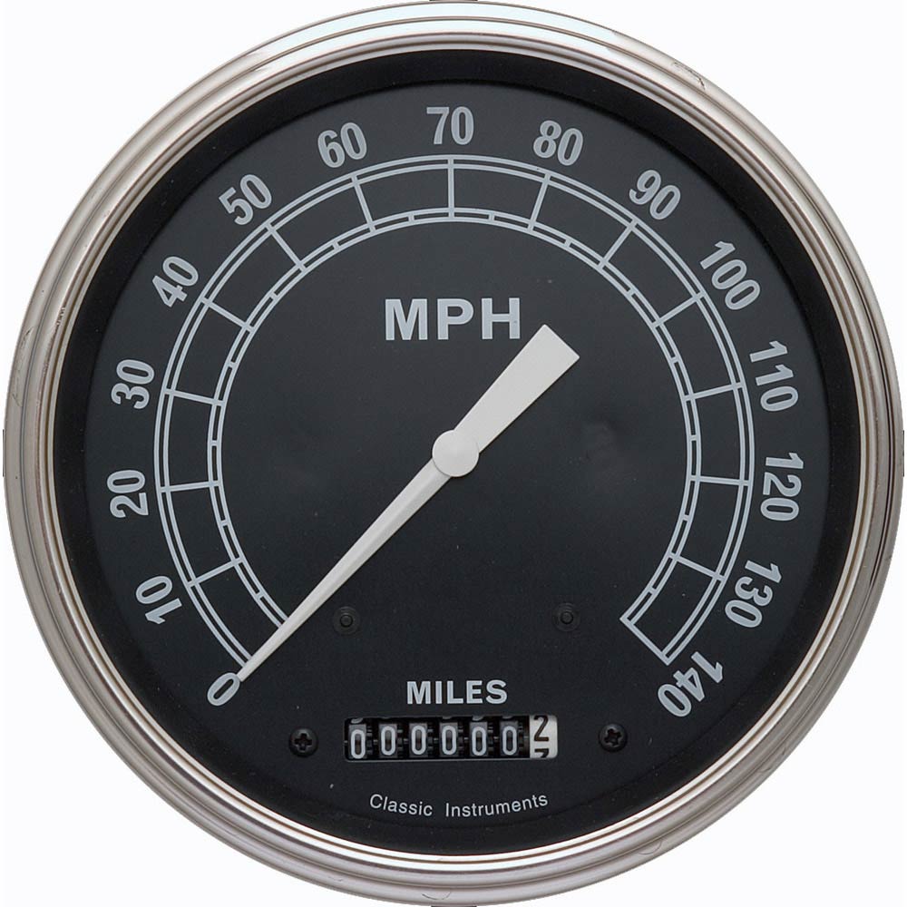 The Tradtional Series 4-5/8" Speedometer Gauge in 0-140 mph Range with Stainless Low Step Bezels and Curved Glass Lens.