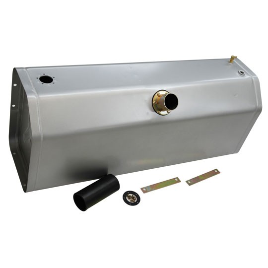 This fuel tank is ideal for the trunks of classic street rods and the beds of hot rod trucks. Designed to bolt in with large flanges and stamped steel plates. Connect the supplied hose to your favorite neck and cap for a custom look.