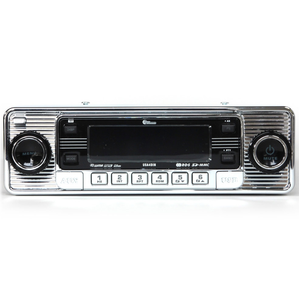 Custom Autosound's USA4-DIN radio is a great choice for any classic car or truck with a "DIN" radio opening (approx. 7.2" x 2.11"). This includes most foreign and domestic vehicles from 1984 onward. The USA4-DIN also fits perfectly in classic cars, trucks and street-rods with dashes cut for DIN radios. The USA4-DIN has a full featured digital display that flips down to reveal a CD player underneath.