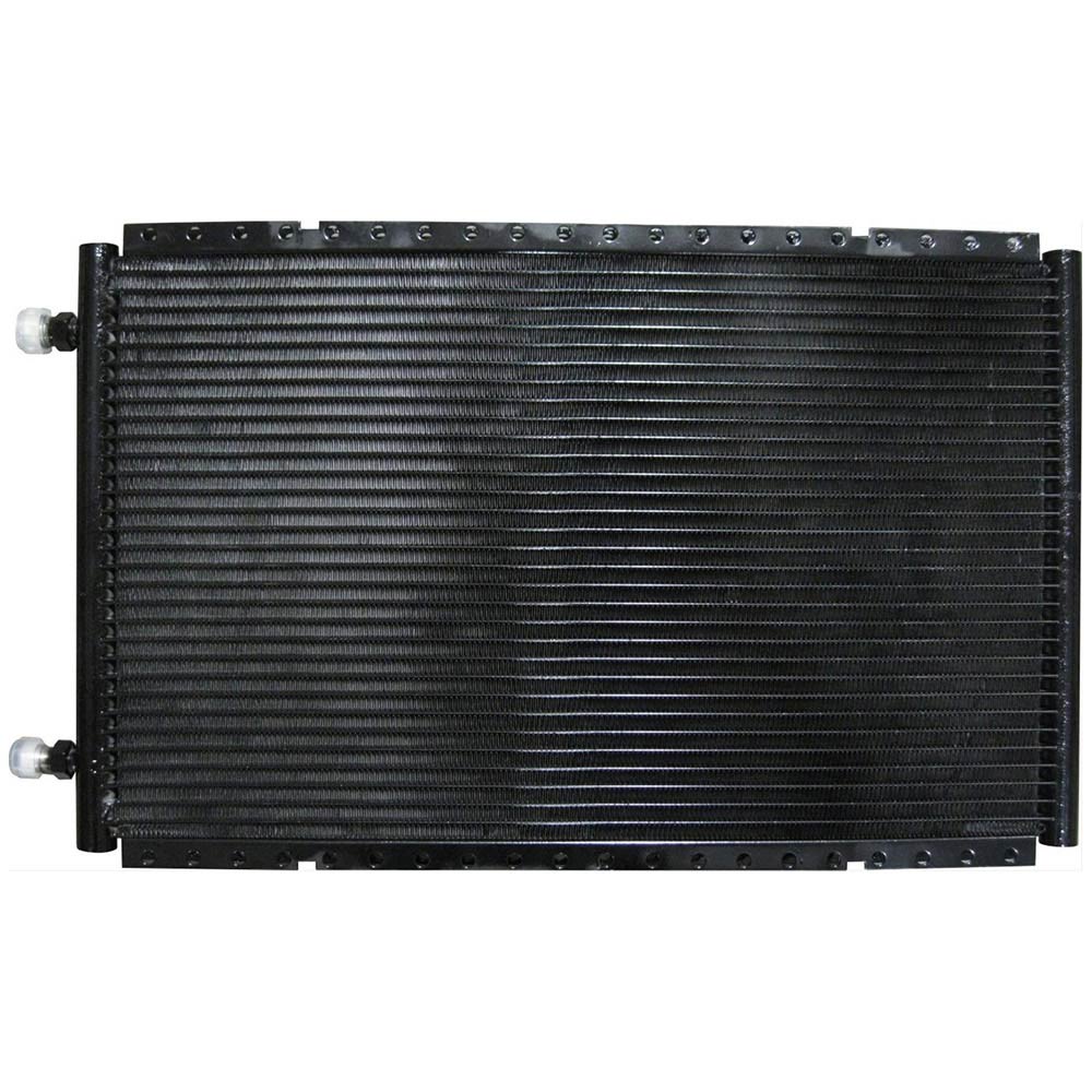 This Horizontal SuperFlow Condenser with brackets is 14 Inch tall x 22 Inch wide x .83 Inch thick. It is perfect for late-model cars with more grill area. The fittings are Male O-ring with the #8 on the top and #6 on the bottom.