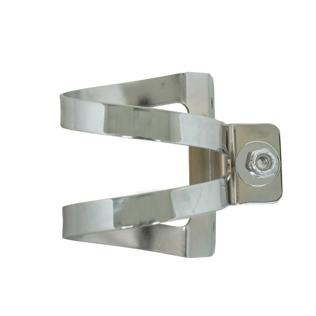 Double-strap heavy duty chrome drier side 90 degree mount with welded stud, chrome washer and nut.