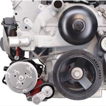 This compressor bracket system is designed to replace the OEM factory A/C compressor with an aftermarket Sanden compressor. A/C compressor is driven off the factory inner four grooves of the LS1 Camaro harmonic balancer and mounts the compressor down low on the passengers side of your LS engine.