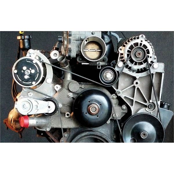 This bracket system is designed to install a Sanden compressor onto the original engine accessory drive system on GM LS Series engines.