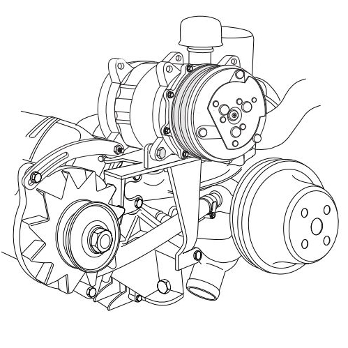 This is a Vintage Air Studebaker 259-304 cid V8 A/C Compressor and Alternator Bracket without Power Steering.