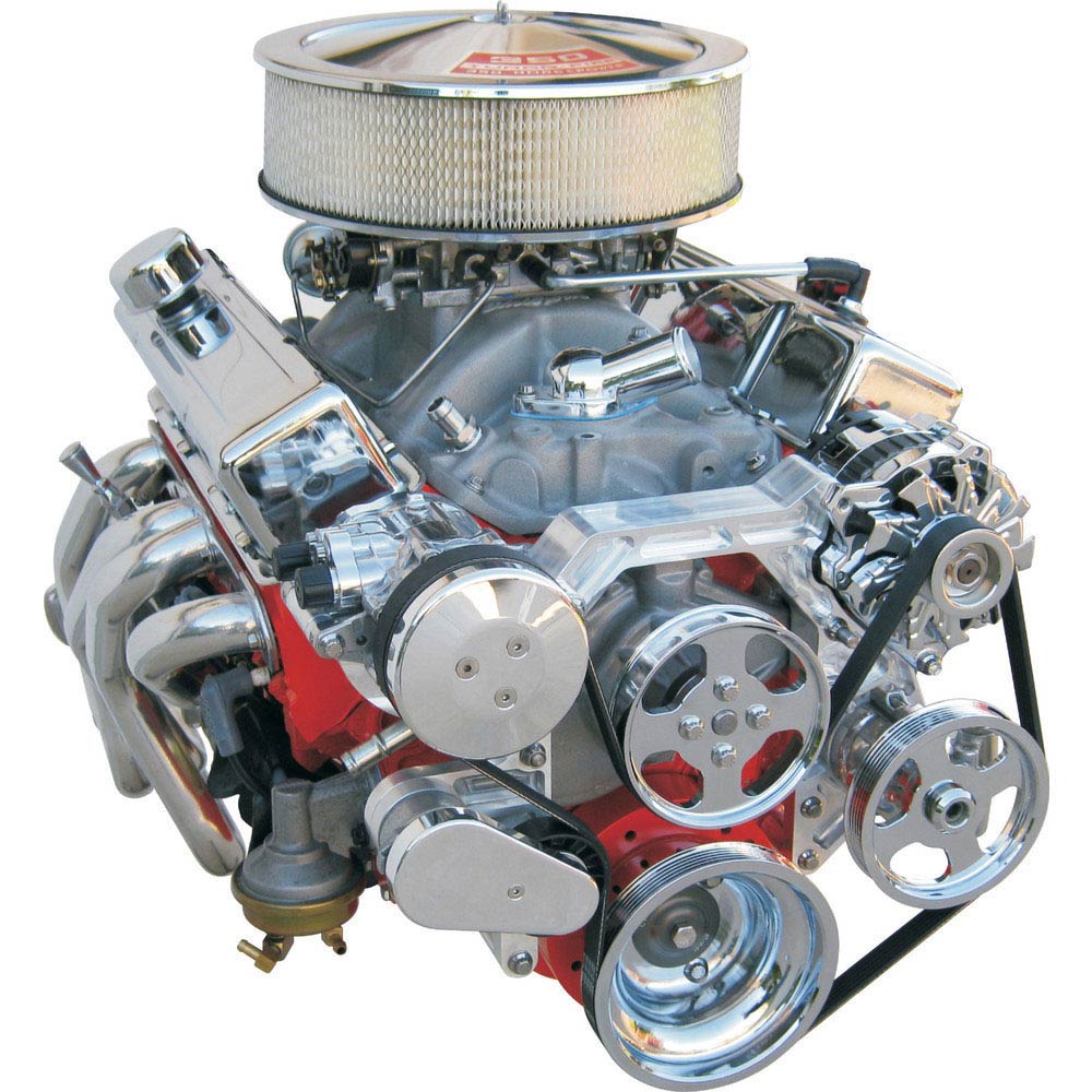 Designed for Small Block Chevrolet applications with power steering this kit features a Detroit Speed aluminum power steering pump, machined finish brackets, chrome compressor, chrome alternator, chrome pulleys, chrome A/C compressor clutch cover and chrome tensioner cover.
