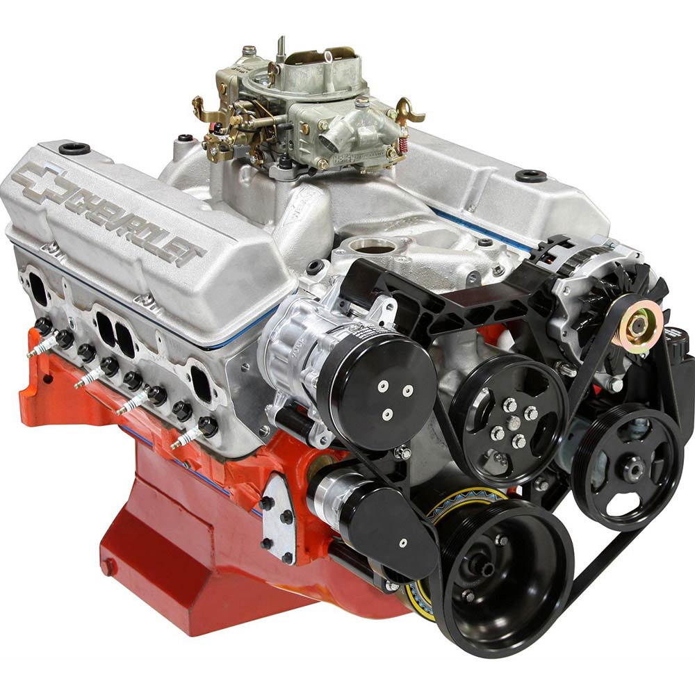 Designed for Small Block Chevrolet applications without power steering this kit features black anodized brackets, natural finish compressor, natural finish alternator, black hard coat pulleys, black anodized A/C compressor clutch cover and black anodized tensioner cover.