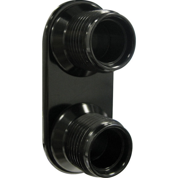 This is a Vintage Air Streamline black anodized aluminum 2 Way bulkhead plate for Heater with two # 10 Male O-Ring fittings. This is a low profile design that is easier to install, just drill 2 individual holes and your ready to install.