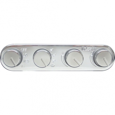 This control panel is designed to fit into very compact dash or console positions. The panel is internally lighted through the soft-glow aluminum knobs and it delivers infinite louver air temperature regulation and bi-level operation of A/C and heat.