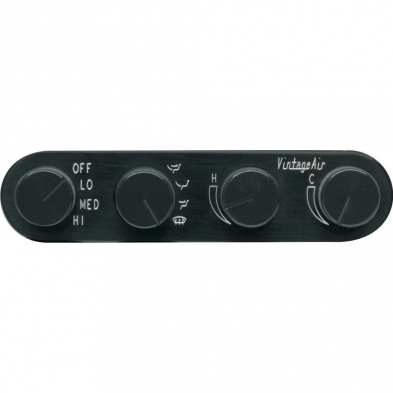 This Vintage Air Gen II control panel is designed to fit into very compact dash or console positions. The panel is internally lighted through the soft glow aluminum knobs and it delivers infinite louver air temperature regulation and bi level operation of A/C and Heat. This servo actuated heater valve that allows the introduction of small amounts of heat to regulate air temperature perfectly.
