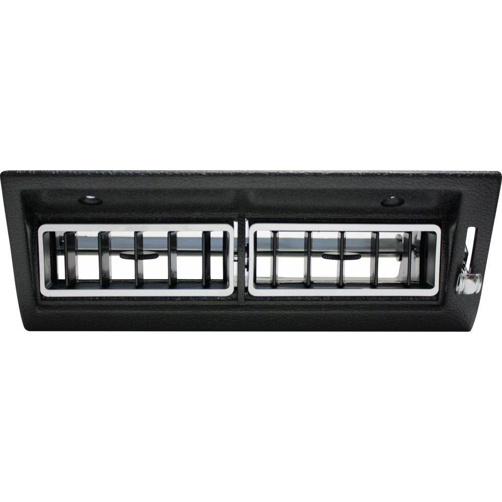 This is a Vintage Air In dash center A/C vent, it was used on factory air 1969 Camaro model cars. It has a black finish with chrome accents.
