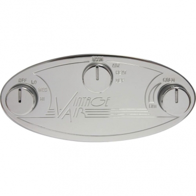 This is a Vintage Air Streamline ProLine oval control panel that features a polished face and is a great upgrade option for Vintage Air vacuum controlled systems.