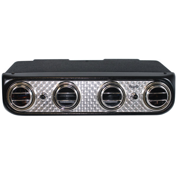 The Vintage Air Heritage under dash A/C system is designed to deliver proven performance while complementing almost every style of classic car or truck. The face is made of real engine turned aluminum that is designed in a classic style that is perfect for customs hot rods and classics. Featuring a high output blower fan, this cool only unit is precision injection molded for light weight and compact fitment. The dimensions are just 16.25 Inches wide x 5.25 Inches tall x 12 Inches deep. Besides the evaporator unit it includes mounting brackets, drain kit and detailed installation instructions.