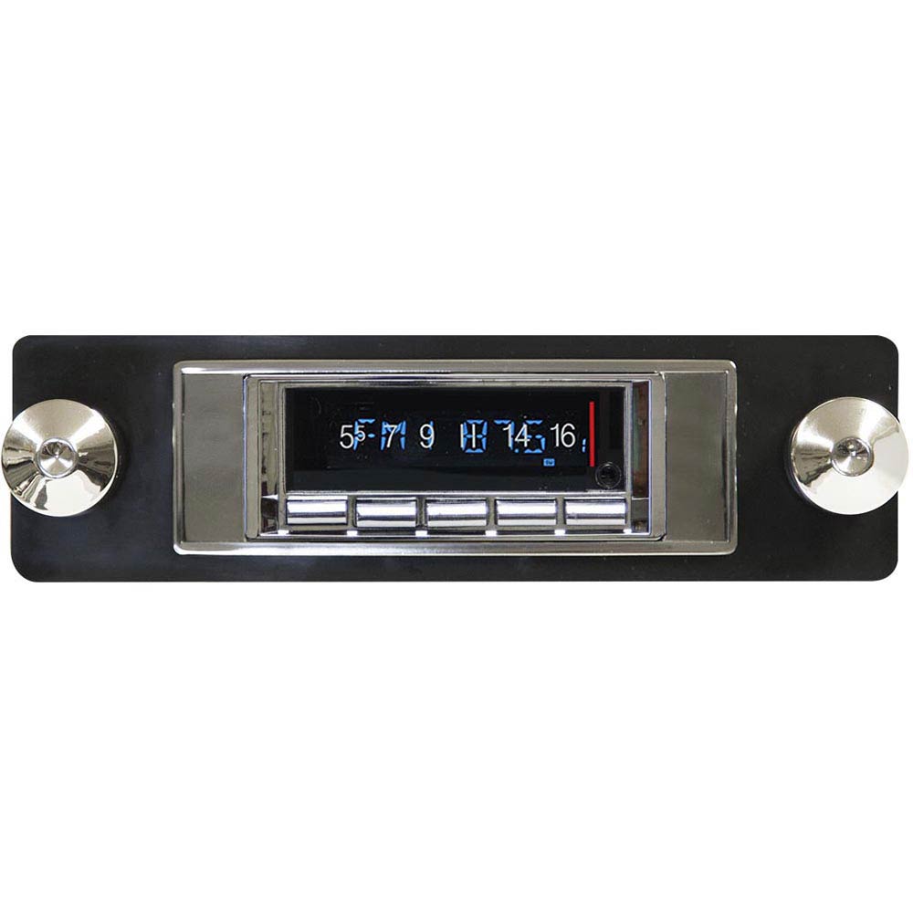The USA-740 offers the same classic look that Custom Autosound has always been known for with today’s latest features. Now, with built-in Bluetooth (microphone included), answer calls and get Bluetooth streaming music from your Bluetooth capable phone or Bluetooth compatible device. Match the dominant color of your instrument cluster with user selectable multiple LCD color choices with LCD dimmer control. The AM/FM RDS tuner shows station, song and artist on the LCD display. Fully controls optional CD-1 CD player. Classic style with today’s sound and performance taking every road and curve with you in your vintage vehicle.