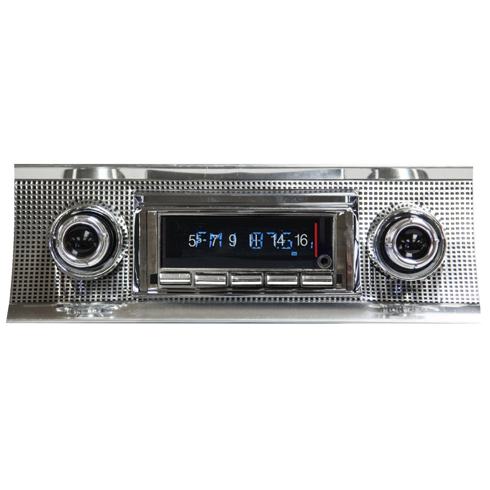The USA-740 offers the same classic look that Custom Autosound has always been known for with today’s latest features. Now, with built-in Bluetooth (microphone included), answer calls and get Bluetooth streaming music from your Bluetooth capable phone or Bluetooth compatible device. Match the dominant color of your instrument cluster with user selectable multiple LCD color choices with LCD dimmer control. The AM/FM RDS tuner shows station, song and artist on the LCD display. Fully controls optional CD-1 CD player. Classic style with today’s sound and performance taking every road and curve with you in your vintage vehicle.