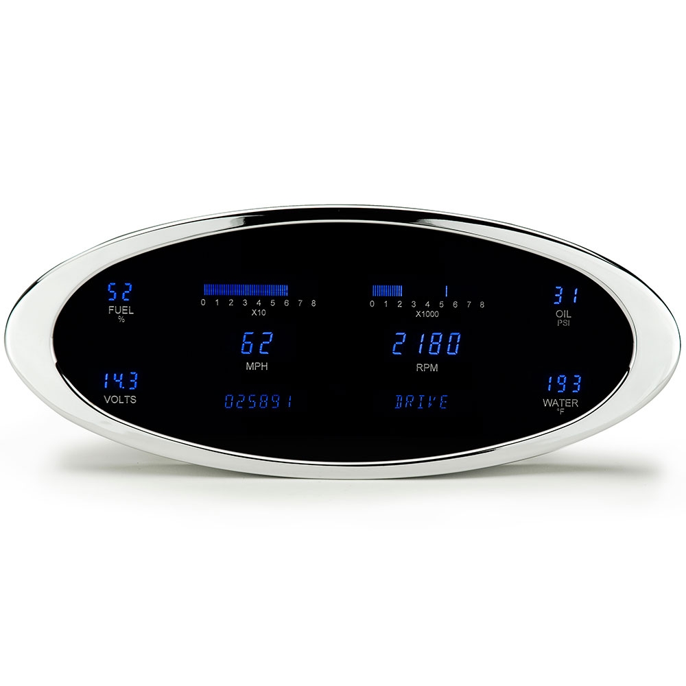 6-Gauge Universal Elliptical VFD Gauge Kit - Chrome/Blue
