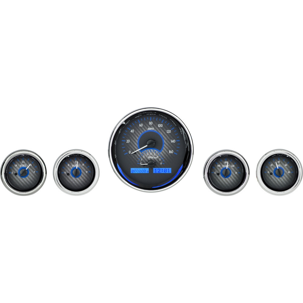 VHX-1015-C-B Universal 5 Gauge Kit in Carbon Fiber with Blue Illumination