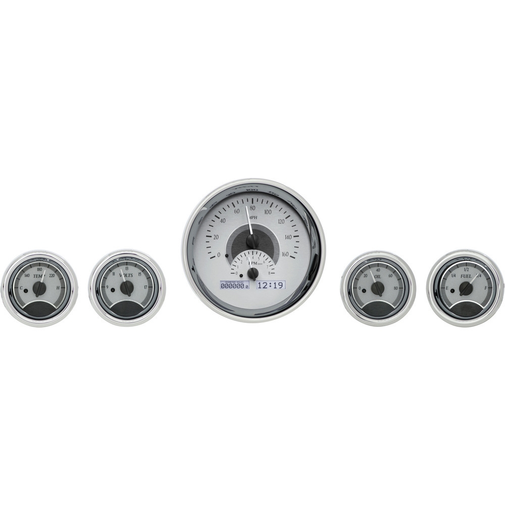 VHX-1015-S-W Universal 5 Gauge Kit in Silver Alloy with White Illumination