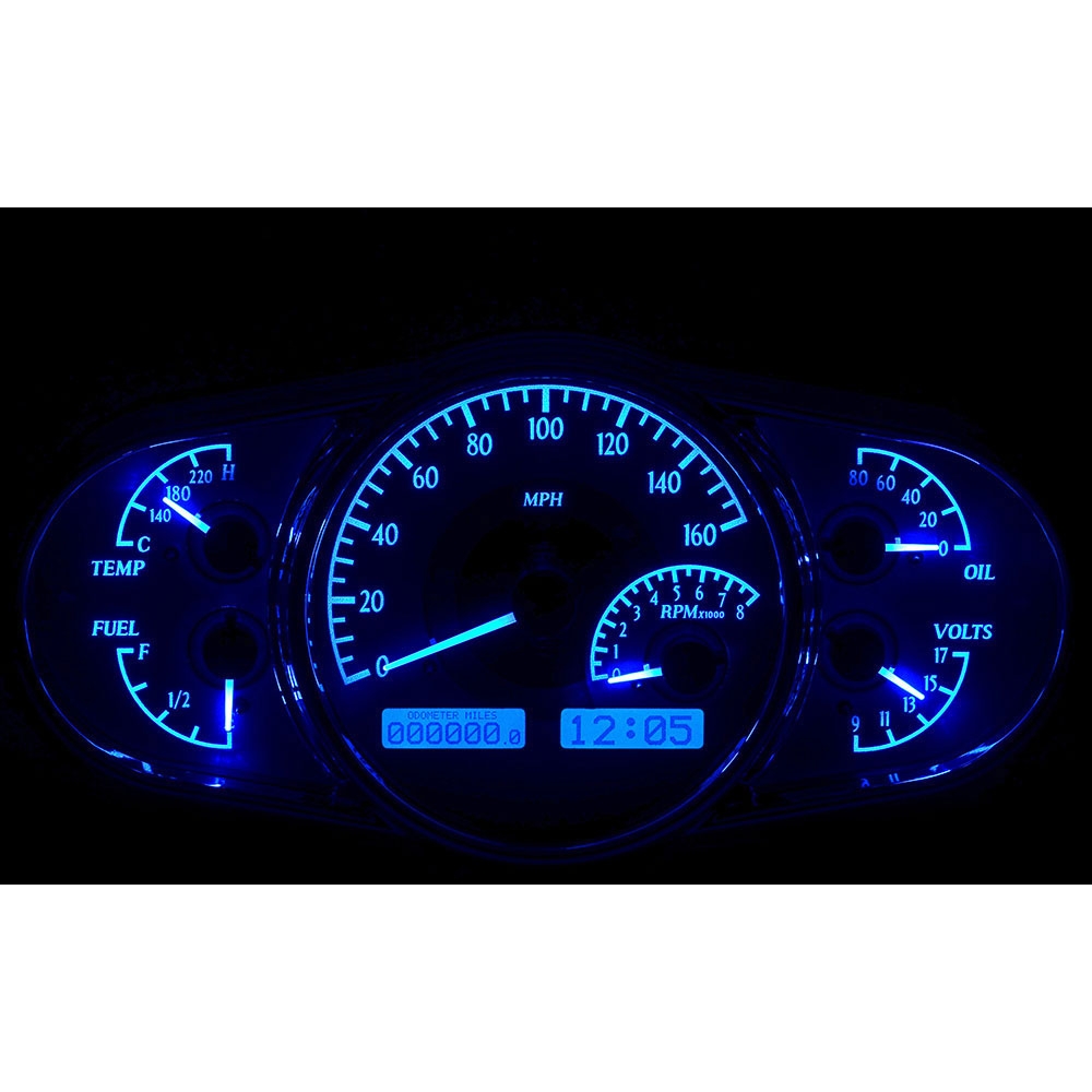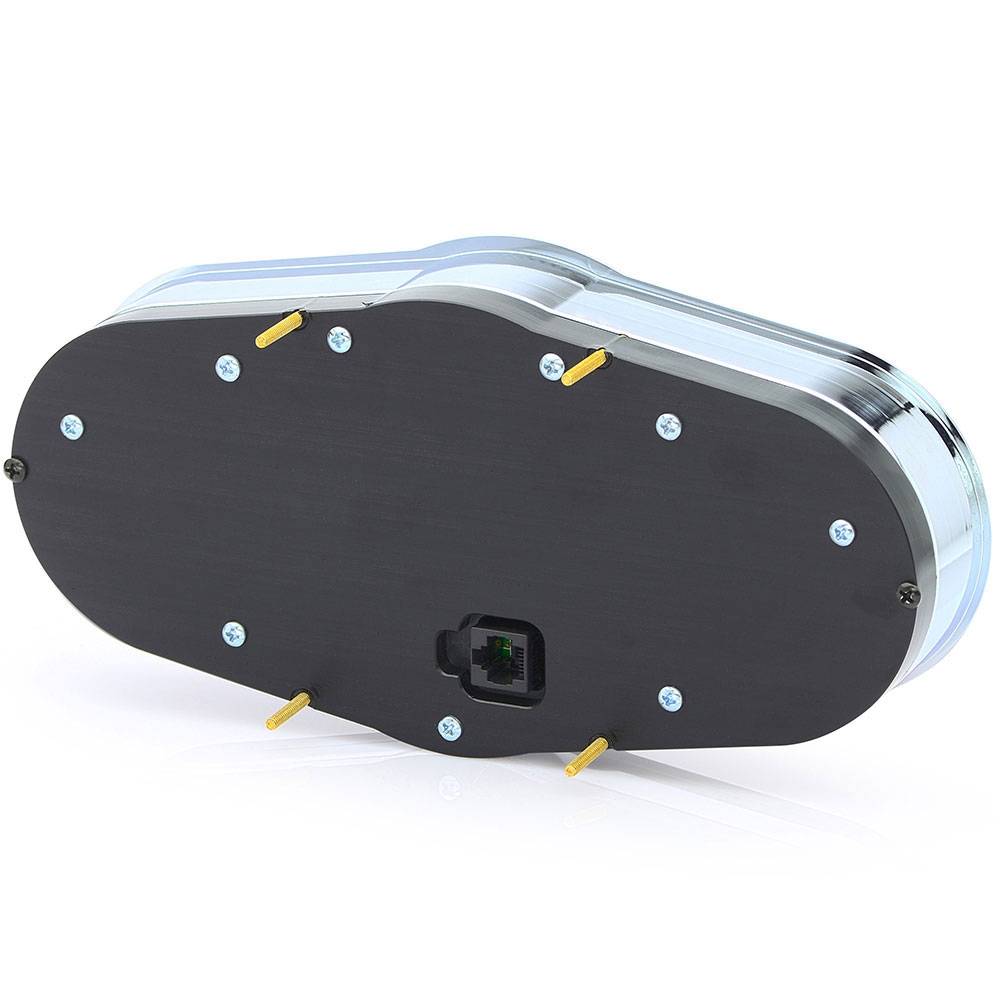 The new Dakota Ditigal Universal VHX-1016 Elliptical gauge cluster measures 10-1/8" W x 5" H and includes a triple-chrome plated, machined aluminum gauge housing.