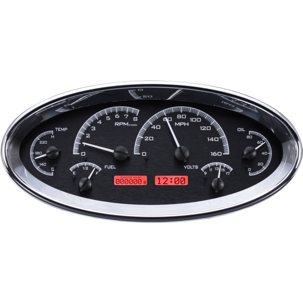 VHX-1017-K-R Universal 5.7" x 12" Oval Gauge Kit in Black Alloy with Red Illumination