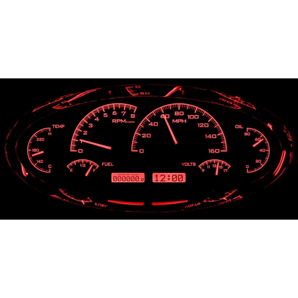 This Dakota Digital Universal VHX-1017 Elliptical gauge cluster measures 12.05" W x 5.7" H