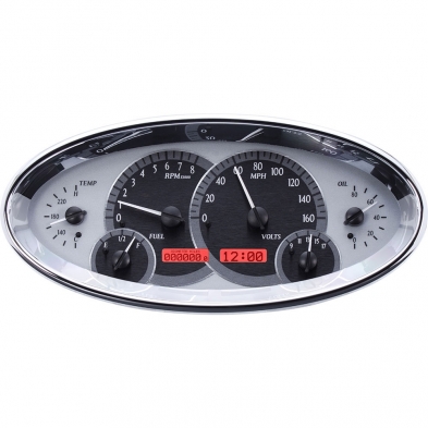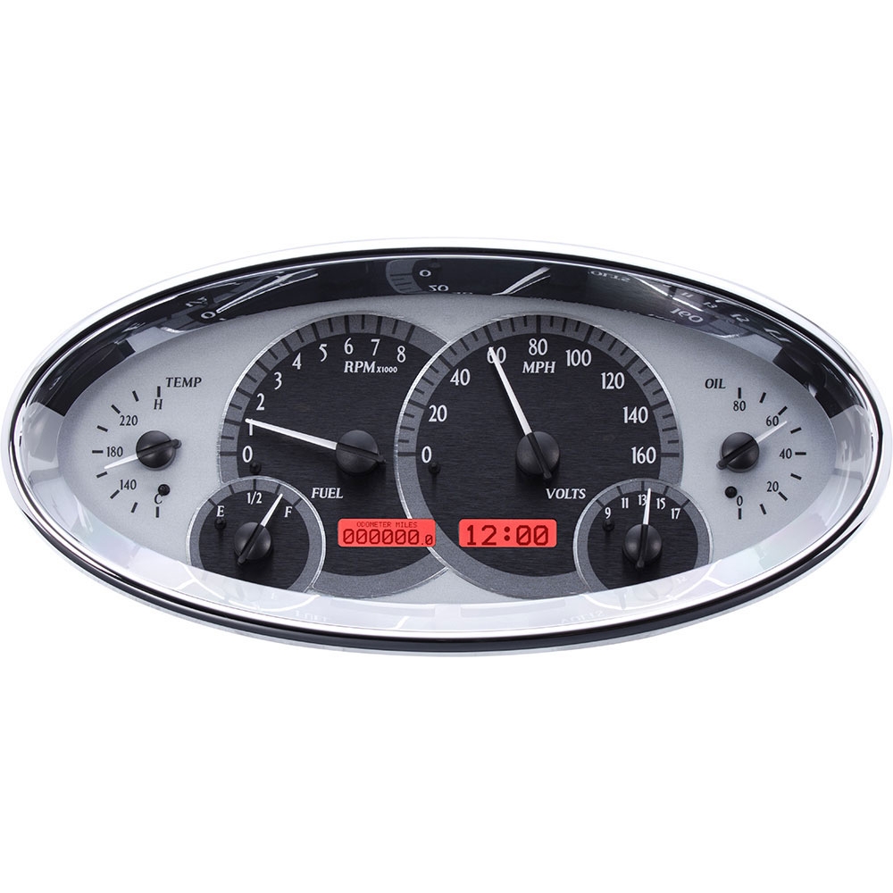 VHX-1017-S-R Universal 5.7" x 12" Oval Gauge Kit in Silver Alloy with Red Illumination