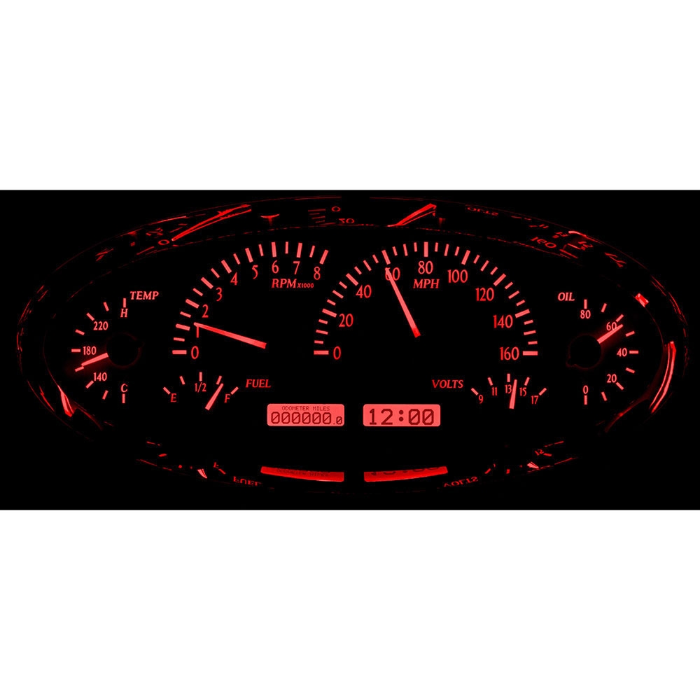 This Dakota Digital Universal VHX-1017 Elliptical gauge cluster measures 12.05" W x 5.7" H