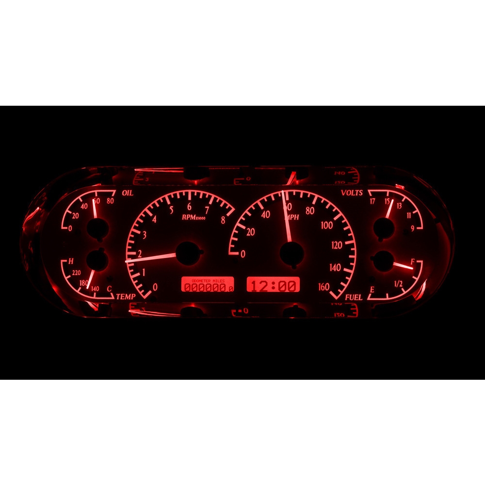 Fully lit needles, backlit faces, and highly visible LCD message centers are a few of the things that you can see which set the VHX Series apart from yesterday’s traditional approach to instrumentation. A few of the features which you don’t normally see are the micro-controlled precision stepper motors, solid state sensors for unparalleled accuracy, and user-customizable display feedback, all supported by an unrivaled limited lifetime warranty which has become the standard for Dakota Digital instrumentation systems . Completely engineered and manufactured by Dakota Digital in Sioux Falls, South Dakota, the VHX Series has completely revolutionized the instrumentation industry!